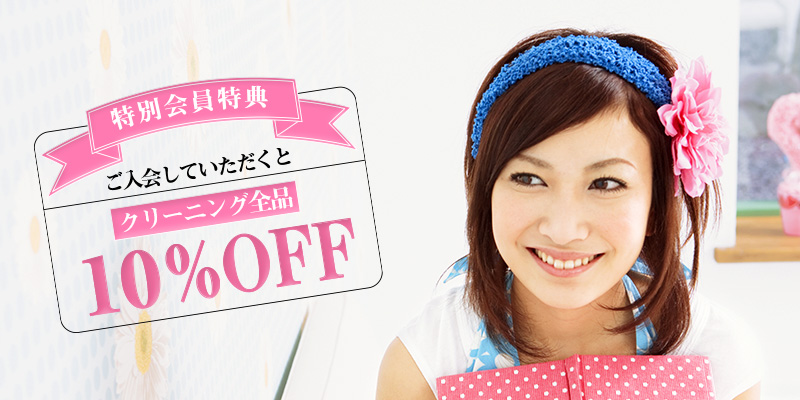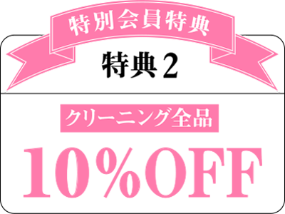 会員様はいつでも一般衣類、レギュラークリーニング・ハイクラスクリーニングが10%OFFでご利用いただけます。