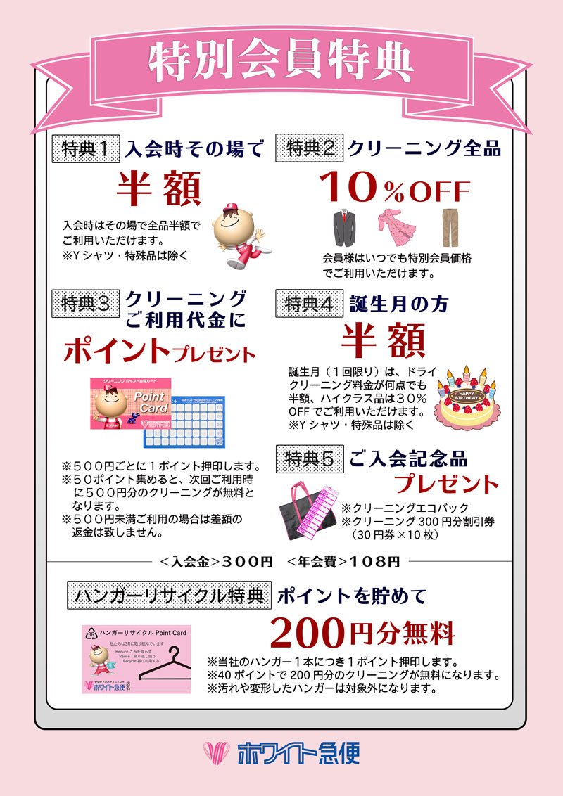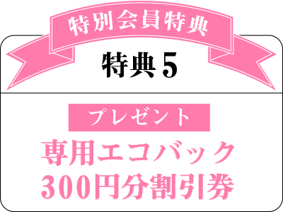 ご入会記念として、当社専用のクリーニングエコバックと300円分割引券(30円×10枚)をプレゼントします。