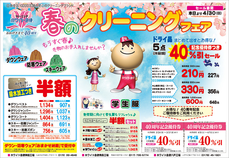 『春のクリーニングフェア』開催!4/30まで